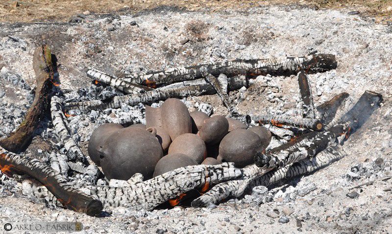 Les poteries n’ayant pas eu suffisamment de temps pour sécher de façon optimale, la technique de cuisson choisie – en foyer ouvert – présentait le meilleur compromis par rapport aux risques de la cuisson. Ce mode de cuisson est peu économe en bois et demande une surveillance quasi permanente, mais il permet, au terme de huit bonnes heures, de garantir un minimum de casse pour les céramiques cuites.