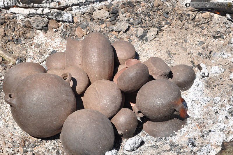 Les poteries cuites avaient été réalisées quelques semaines, voire quelques jours auparavant, sur le site de Bougon, en démonstration auprès du public. La cuisson a donc été l’aboutissement logique de cette session de démonstrations autour des techniques de la céramique pré et protohistorique.