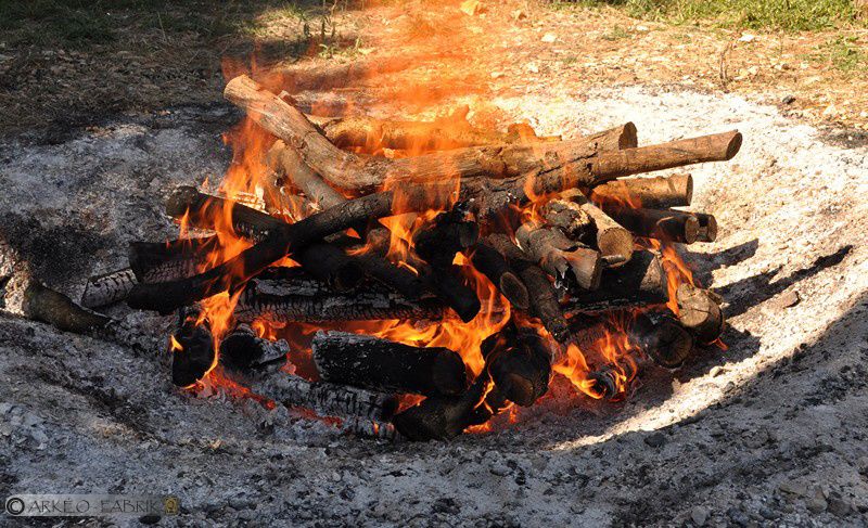 Il consiste à réchauffer les céramiques très lentement, autour du foyer, puis à écarter les braises du centre et à y déposer à la place les céramiques, qui continueront ainsi à préchauffer. Au terme de cette opération, les céramiques ont passé la barre critique des 100 premiers degrés, il est alors possible de relancer le feu à partir des braises du pourtour, et de l’alimenter progressivement et tranquillement, jusqu’à ce que les flammes finissent par venir lécher les céramiques. A ce moment, si aucun bruit suspect n’est venu troubler la quiétude de la potière, on peut alors recouvrir complètement les céramiques de bois qu’on laissera brûler en totalité.